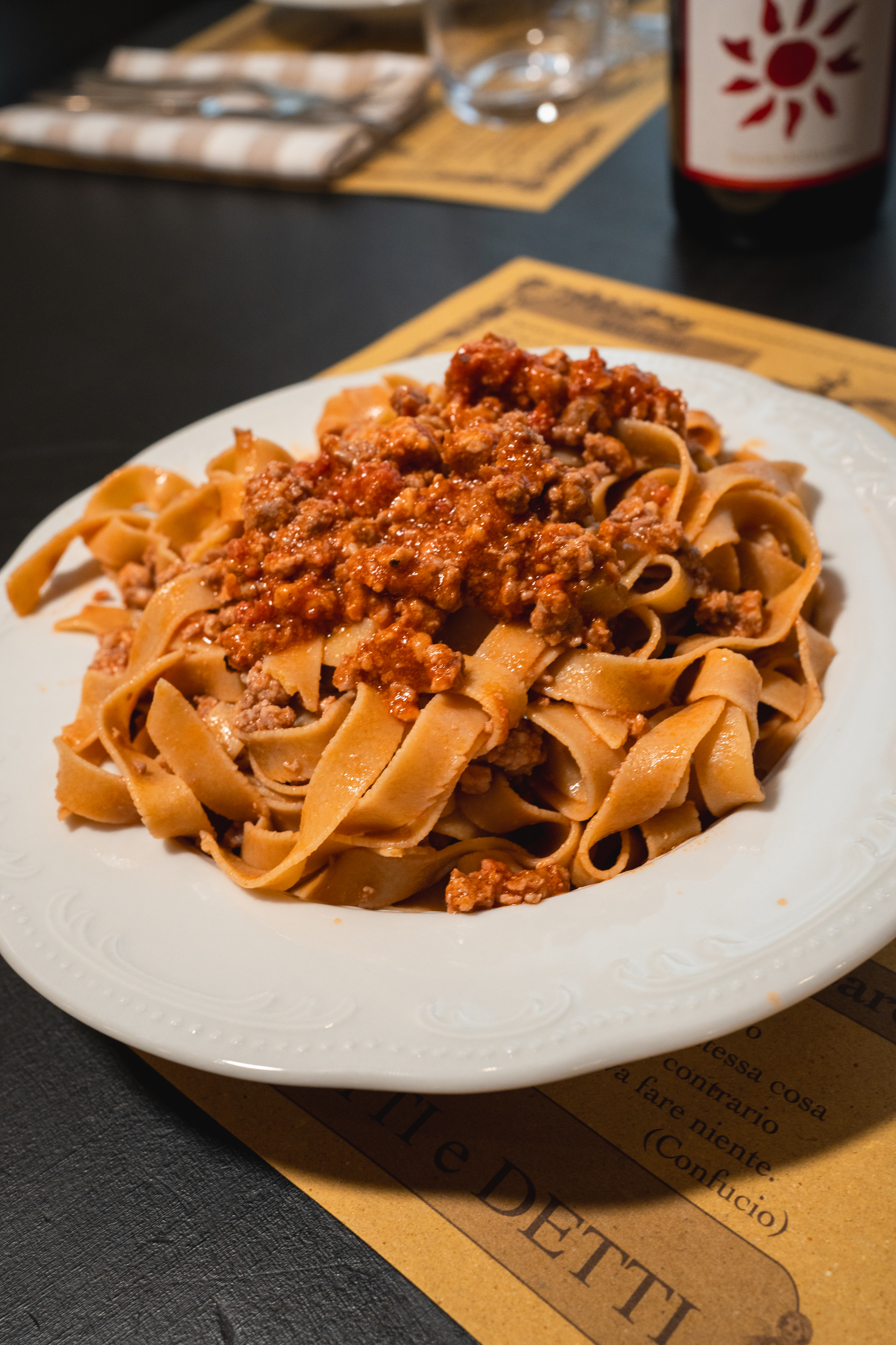 Da Tagliatelleria vogliamo far rivivere proprio quella sensazione: un padellone fumante, un sugo corposo che abbraccia le nostre tagliatelle ruvide e 210 grammi di pasta vera, fatta con cura e servita con generosità.